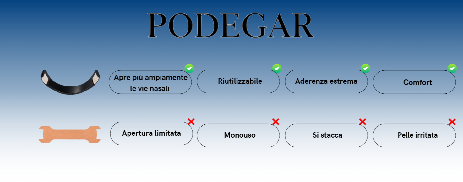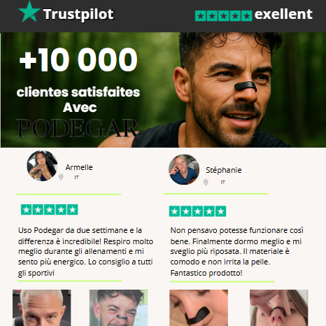 Sì — il 95% dei nostri clienti ha notato un miglioramento della respirazione e delle prestazioni già dopo due settimane di utilizzo. Che sia per dormire meglio o per allenarsi, Podegar aiuta ad aprire le vie nasali fino al +30%, favorendo una respirazione più naturale e fluida.