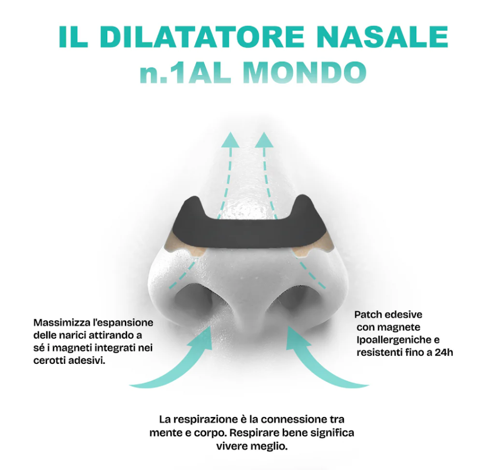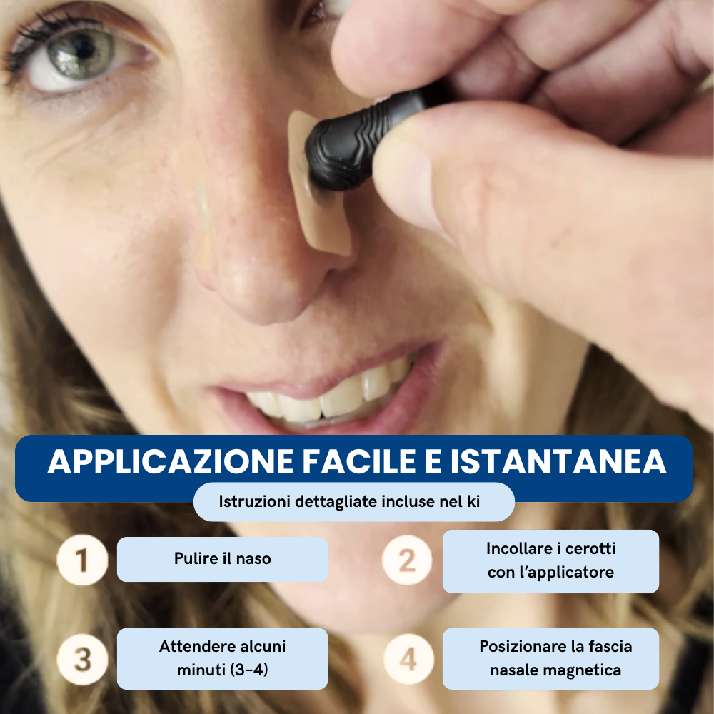 Assolutamente sì. I materiali sono ipoallergenici, leggeri e flessibili, e si adattano naturalmente alla forma del naso senza causare fastidi o irritazioni. Dopo pochi minuti, ti dimentichi perfino di averla addosso.